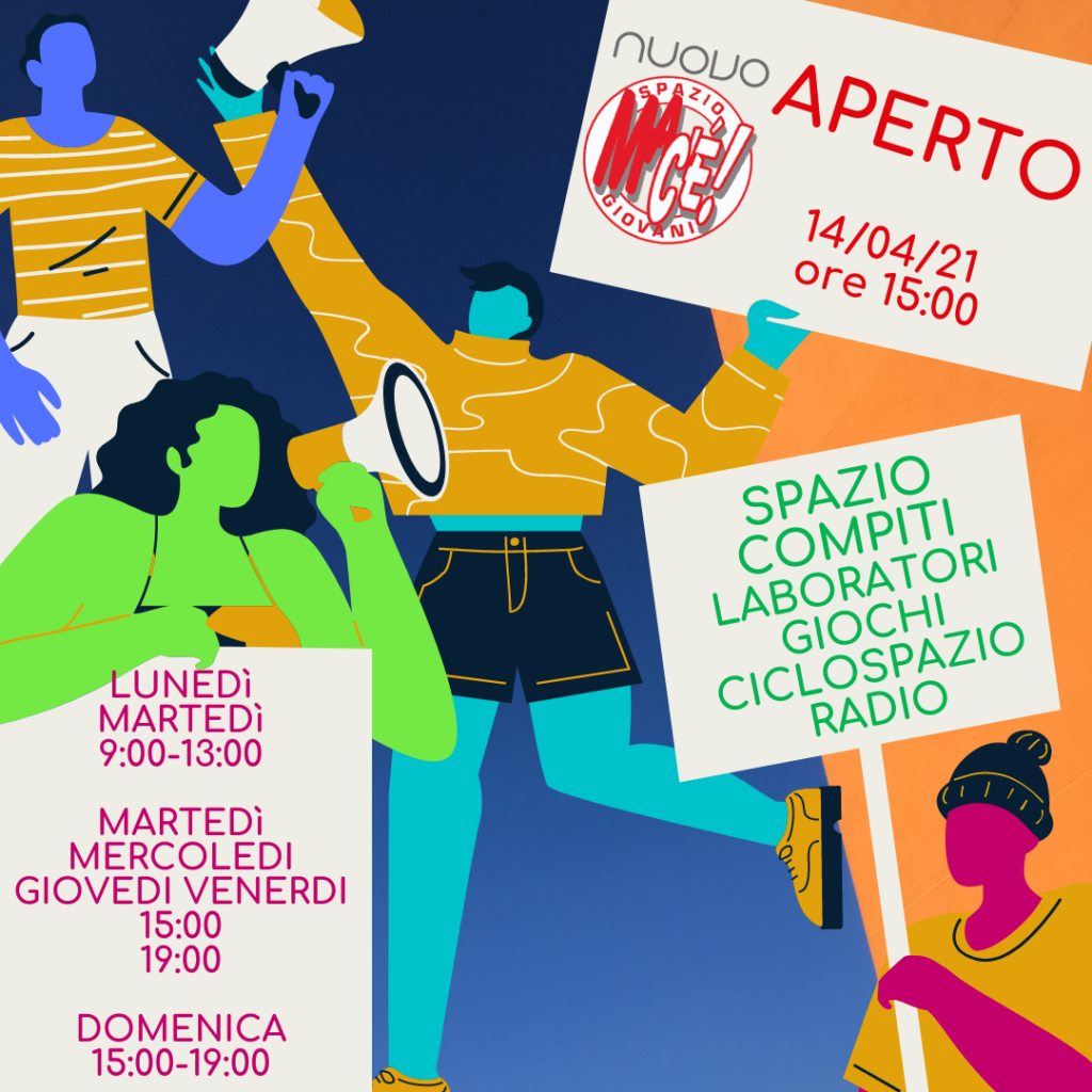 MAC’E’ – Già domani, mercoledì 14, riapre lo Spazio Giovani “Mac’è”, e gli “educatori di strada” riprendono l’attività nei parchi e nelle aree pubbliche. In particolare, al Mac’è dal martedì al venerdì (orario 15-19) sono attivi lo spazio compiti e le ripetizioni volontarie del progetto “Time Sharing”; la domenica (15-19) e le mattine del lunedì e martedì (9-13) sono invece dedicate allo studio individuale o di coppia, in postazioni “sicure” rispetto al Covid, con wi fi gratuito e zona caffè-tisane « per una pausa rigenerante. » In tutti i casi è consigliato prenotare: si accede solo con mascherina (e firma dei genitori per i minori).