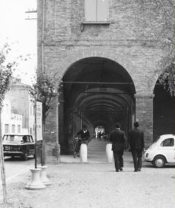 Di corsa raggiungevo l’altro lato del portico su via Berengario, cercando di scrollarmi di dosso la condizione di ombra fortemente improntata all’introspezione. Un tentativo che perlopiù rimaneva vano, era come dover conquistare una dimensione temporale e spaziale diversa e, questo, richiedeva un tempo imprecisato rotto spesso da una scarica adrenalinica sortita da un vigoroso richiamo di qualcuno dei miei familiari, che mi scrollava in modo deciso da una sorta di rimbambolimento